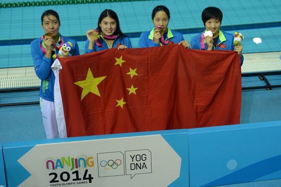 8月18日晚,在南京奥体中心游泳馆举行的青奥会游泳比赛中,我院选手沈铎、张雨霏携手中国队其他两名队友以4分03秒58的成绩夺得女子4×100米混合泳接力冠军。