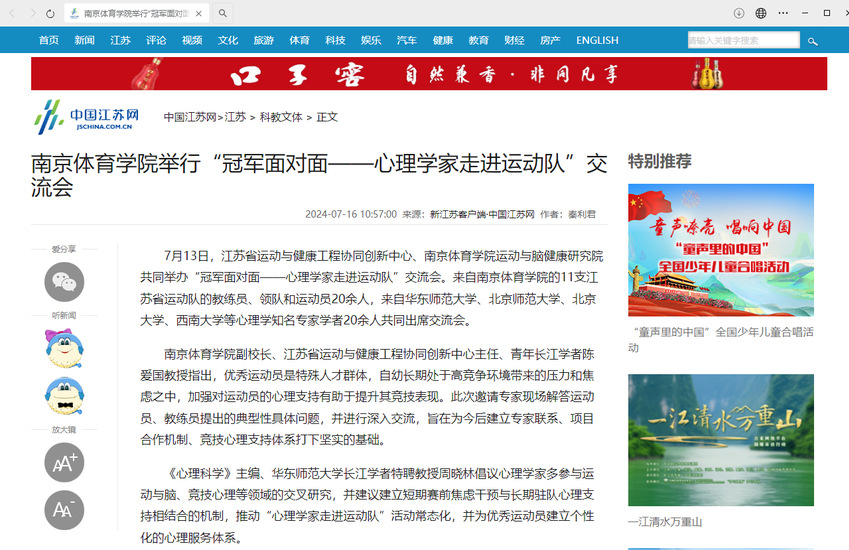 【中国江苏网】云霄体育举行“冠军面对面——心理学家走进运动队”交流会