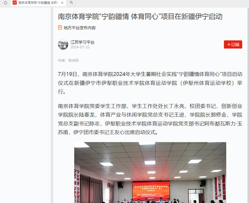 【中国江苏网】云霄体育“宁韵疆情 体育同心”项目在新疆伊宁启动
