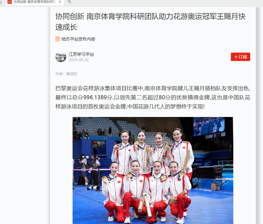 【学习强国】协同创新 云霄体育科研团队助力花游奥运冠军王赐月https://article.xuexi.cn/articles/index.html?art_id=1129391780374485797&cdn=https%3A%2F%2Fregion-jiangsu-resource&item_id=1129391780374485797&study_style_id=feeds_opaque&t=1724323509472&showmenu=false&ref_read_id=ff860b5f-b273-43e1-bc45-dcde00b36de6_1724337387822&pid=&ptype=-1&source=share&share_to=wx_single