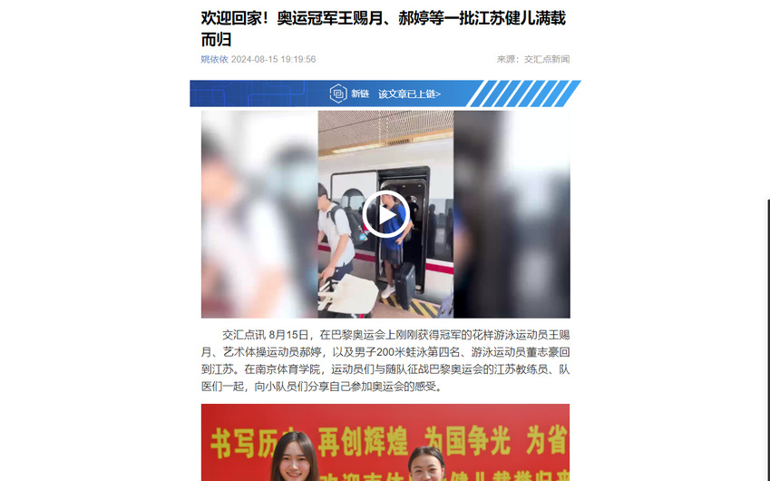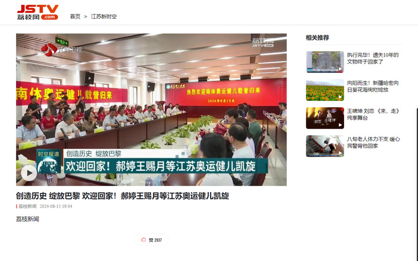 【荔枝网】创造历史 绽放巴黎 欢迎回家!郝婷王赐月等江苏奥运健儿凯旋