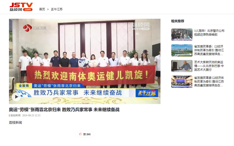 【江苏体育新闻频道】张雨霏:最快下个月回归赛场