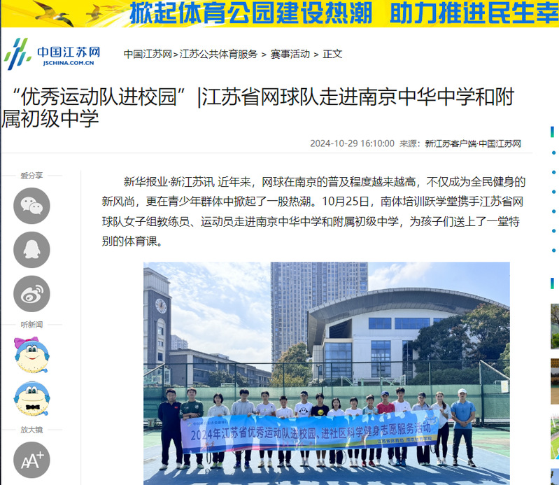【中国江苏网】“优秀运动队进校园”|江苏省网球队走进南京中华中学和附属初级中学