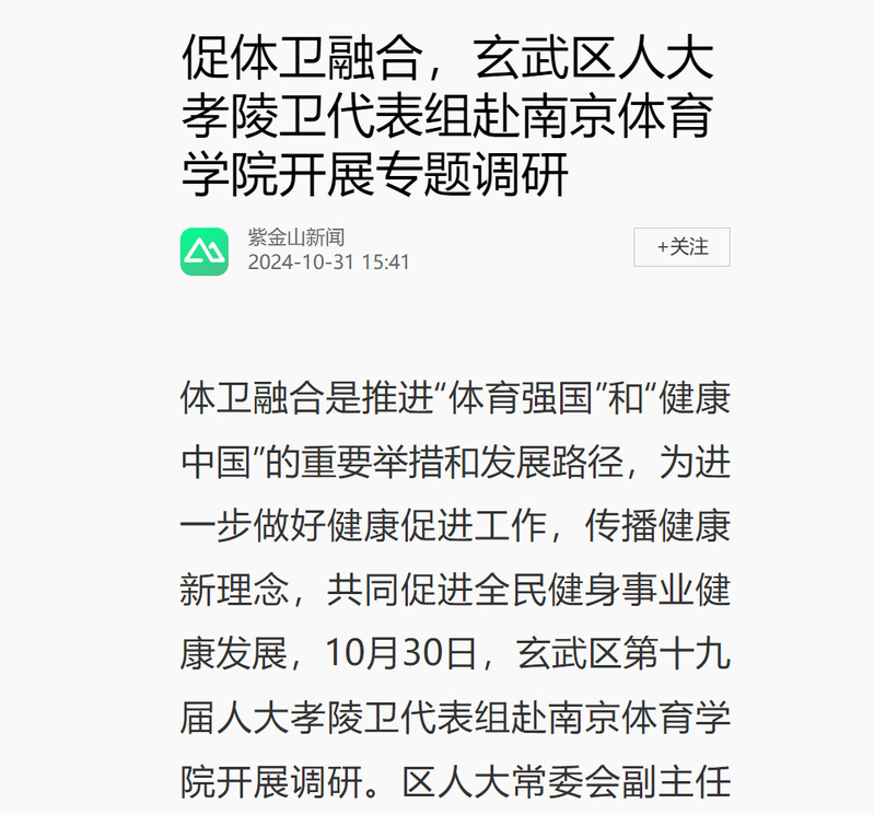 【紫金山新闻】促体卫融合,玄武区人大孝陵卫代表组赴云霄体育开展专题调研