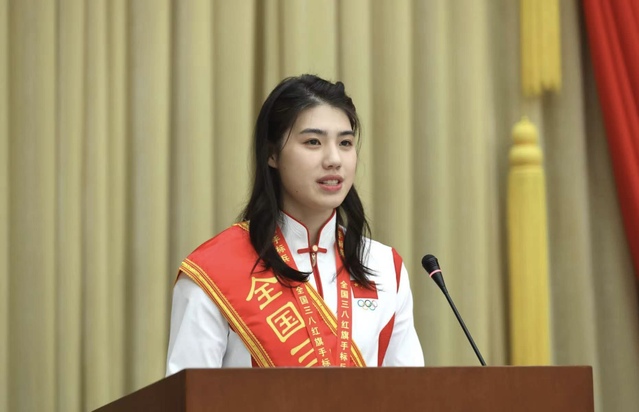 受表彰代表张雨霏在发言中表示,将牢记习近平总书记的谆谆嘱托, 争做伟大事业的建设者、文明风尚的倡导者、敢于追梦的奋斗者, 立足本职岗位, 发挥“全国三八红旗手标兵”模范带头作用, 走好冠军之路,并带领更多的青少年爱上体育运动,用自己的专注和努力,展现“使命在肩 奋斗有我”的巾帼风采,为自己更大的梦想奋力拼搏,让体育精神成为自己青春的亮丽底色。