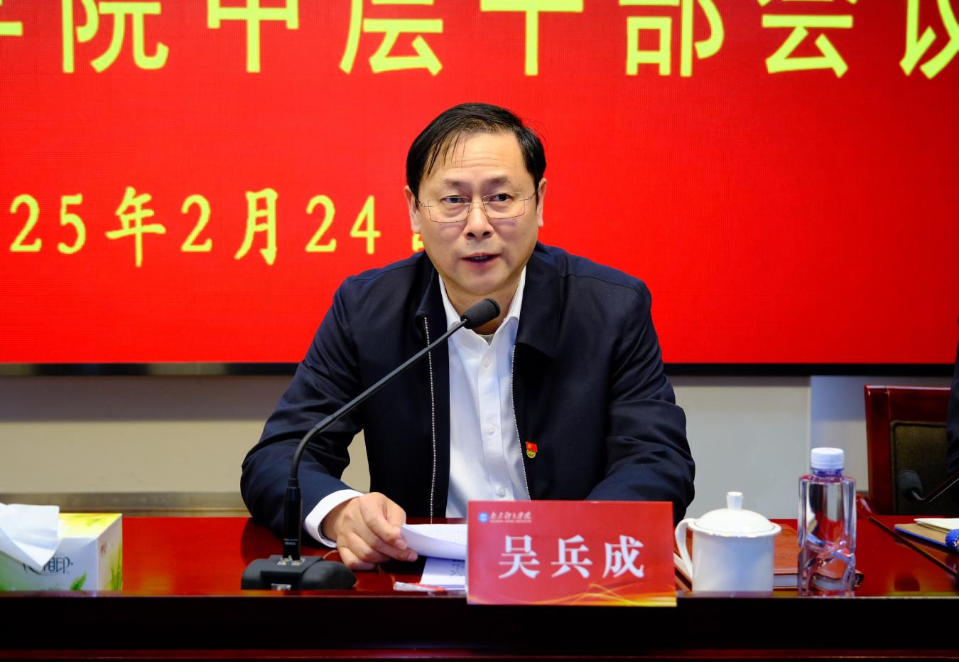 2月24日下午,我校在行政楼101会议室召开中层干部会议。党委书记刘红明总结学校寒假工作,安排部署新学期开学和2025年重点工作。党委副书记、校长吴兵成主持会议并讲话,全体校领导及全体中层干部参加会议。