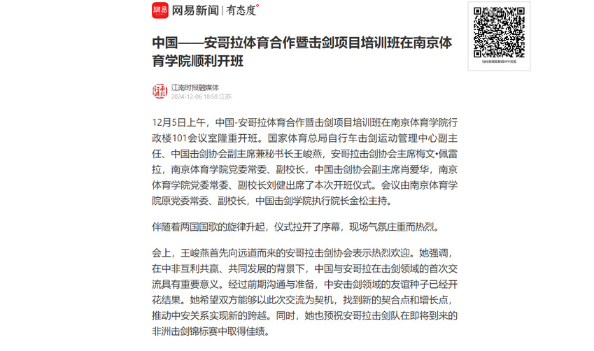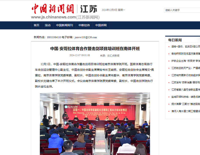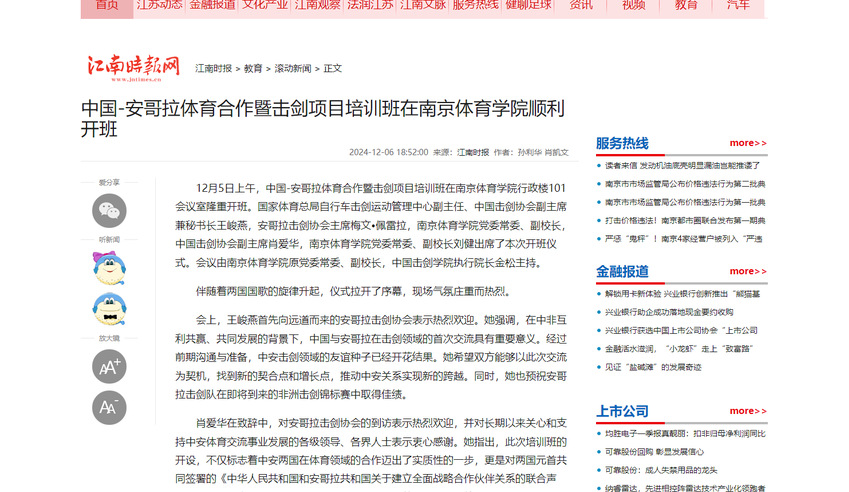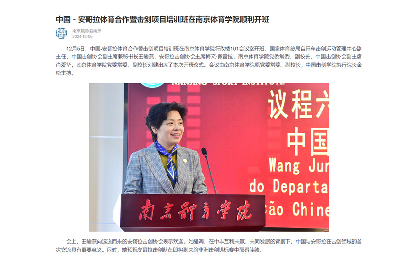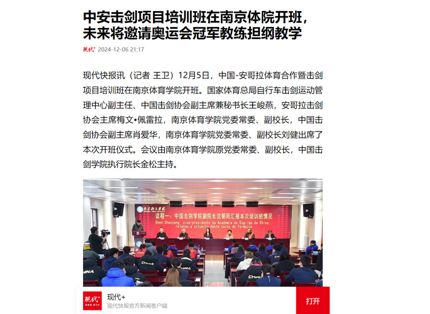 【南京晨报】中国-安哥拉体育合作暨击剑项目培训班在云霄体育顺利开班
