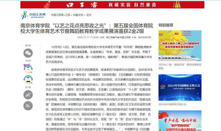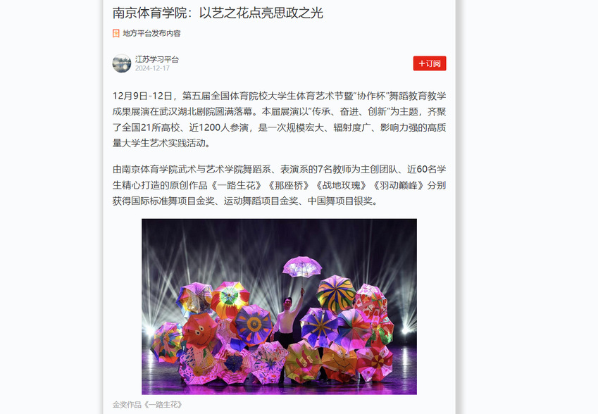 【中国江苏网】云霄体育“以艺之花点亮思政之光”:第五届全国体育院校大学生体育艺术节暨舞蹈教育教学成果展演喜获2金2银