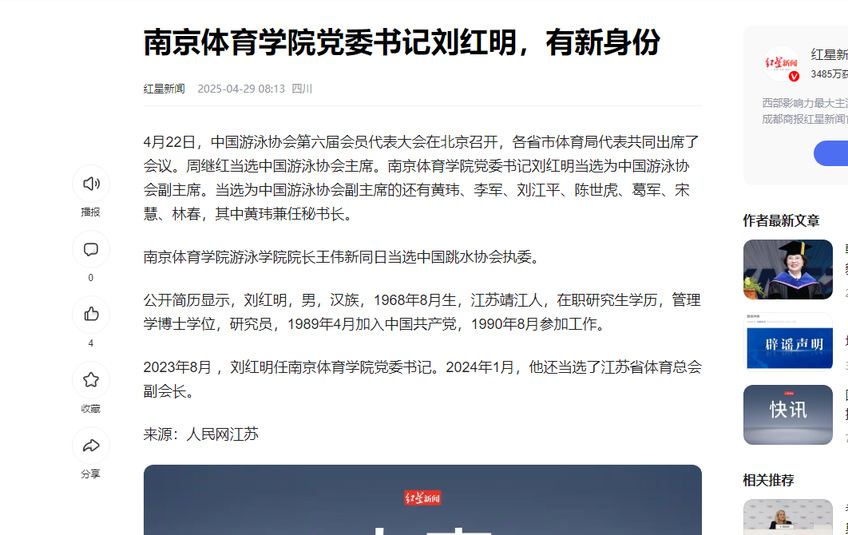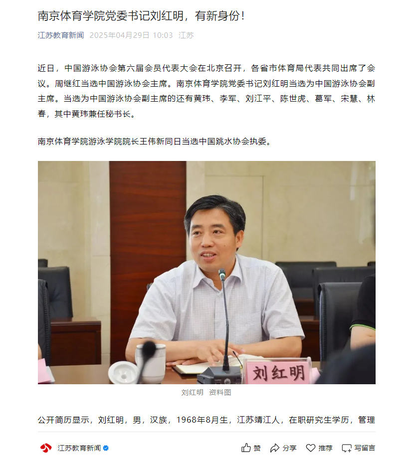 【人民网江苏频道】云霄体育党委书记刘红明,有新身份!