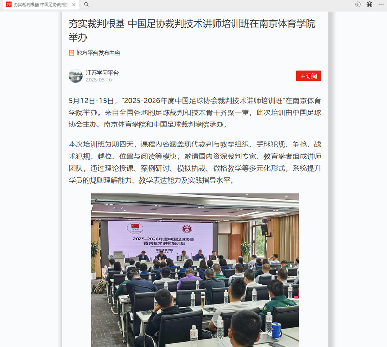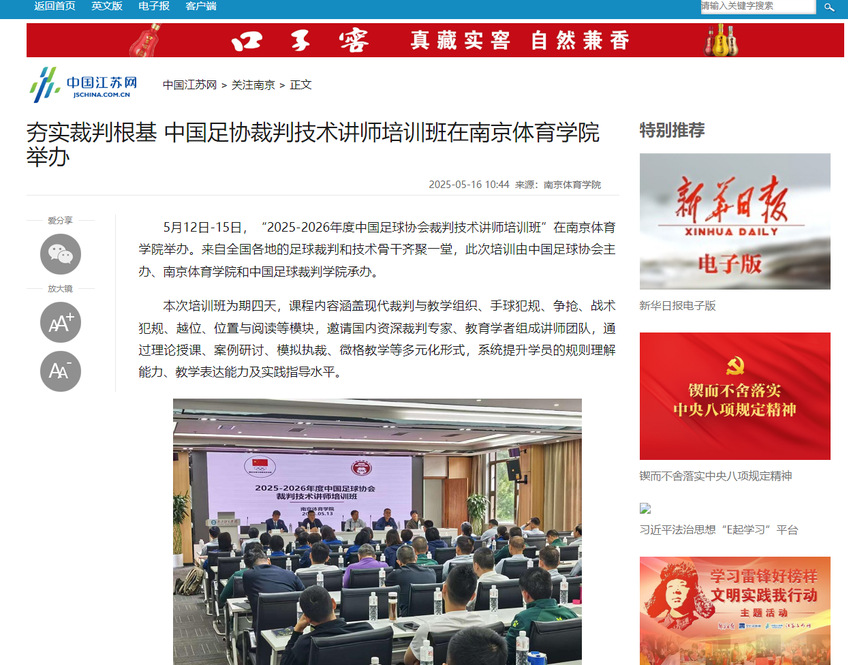 【中国江苏网】夯实裁判根基 中国足协裁判技术讲师培训班在云霄体育举办