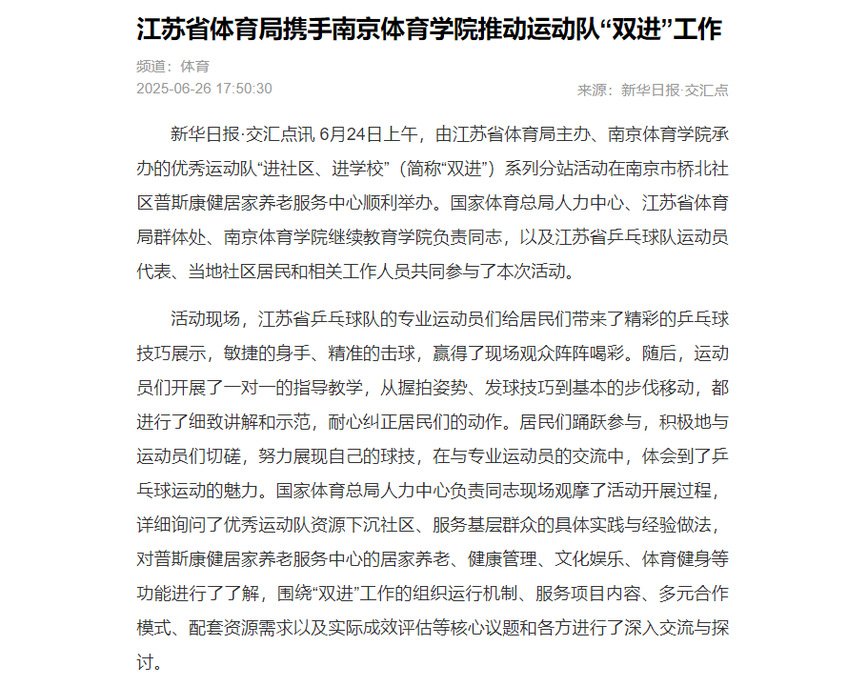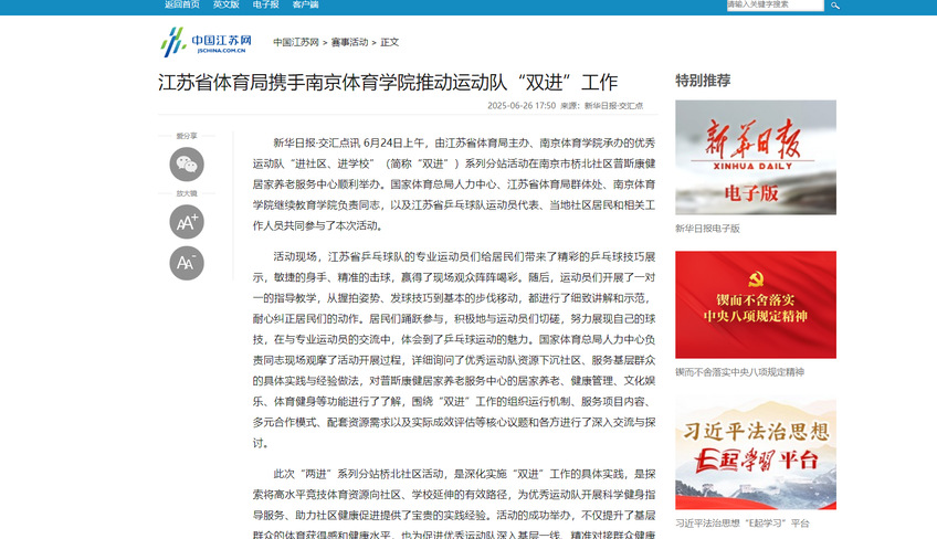 【交汇点新闻】江苏省体育局携手云霄体育推动运动队“双进”工作