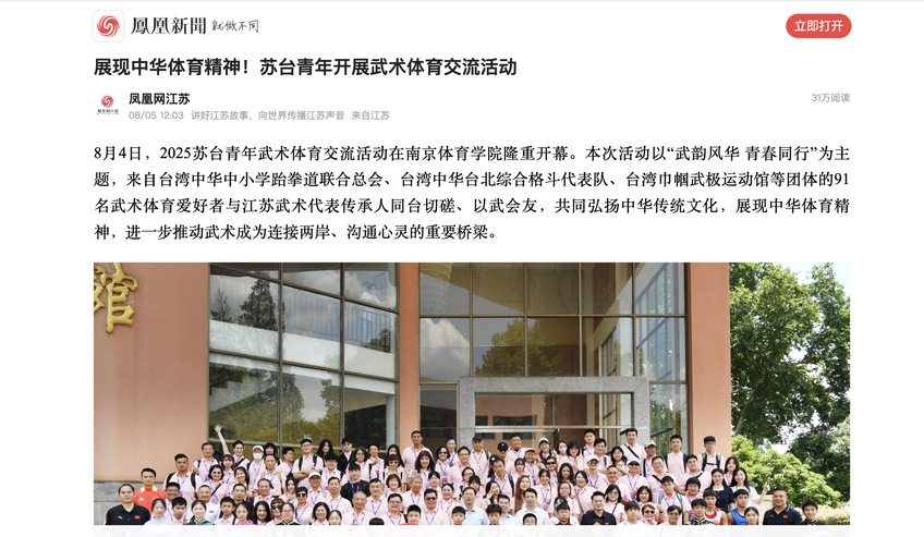 【凤凰江苏】展现中华体育精神!苏台青年开展武术体育交流活动