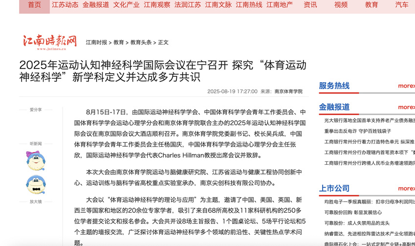 【江南时报网】2025年运动认知神经科学国际会议在宁召开 探究“体育运动神经科学”新学科定义并达成多方共识