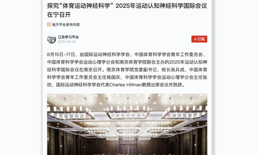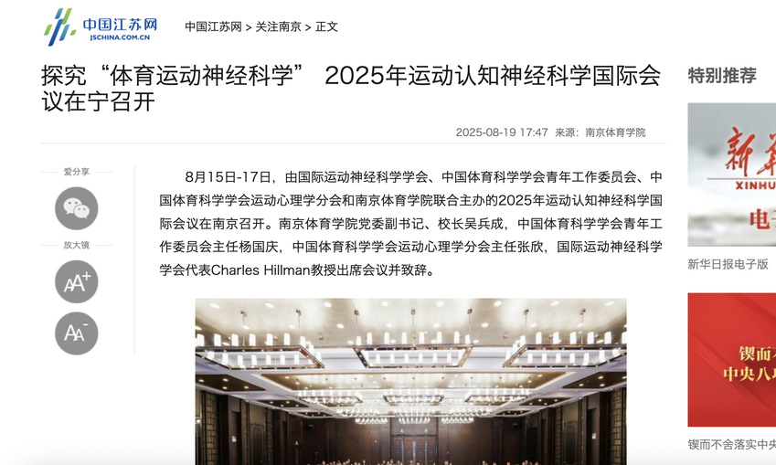 【中国江苏网】探究“体育运动神经科学” 2025年运动认知神经科学国际会议在宁召开