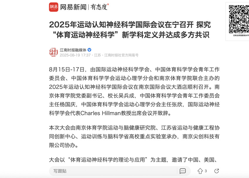 【网易新闻】2025年运动认知神经科学国际会议在宁召开 探究“体育运动神经科学”新学科定义并达成多方共识