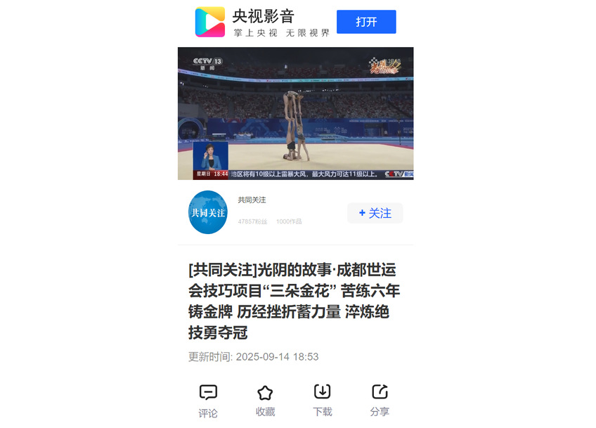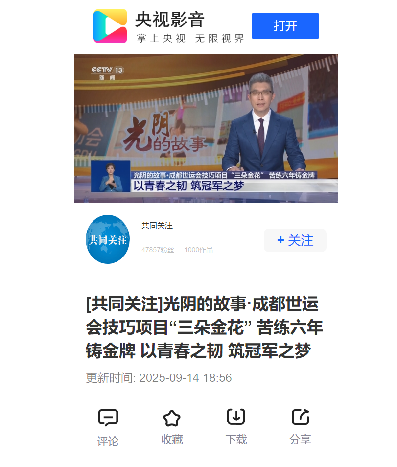 【央视影音】光阴的故事·成都世运会技巧项目“三朵金花” 苦练六年铸金牌 以青春之韧 筑冠军之梦