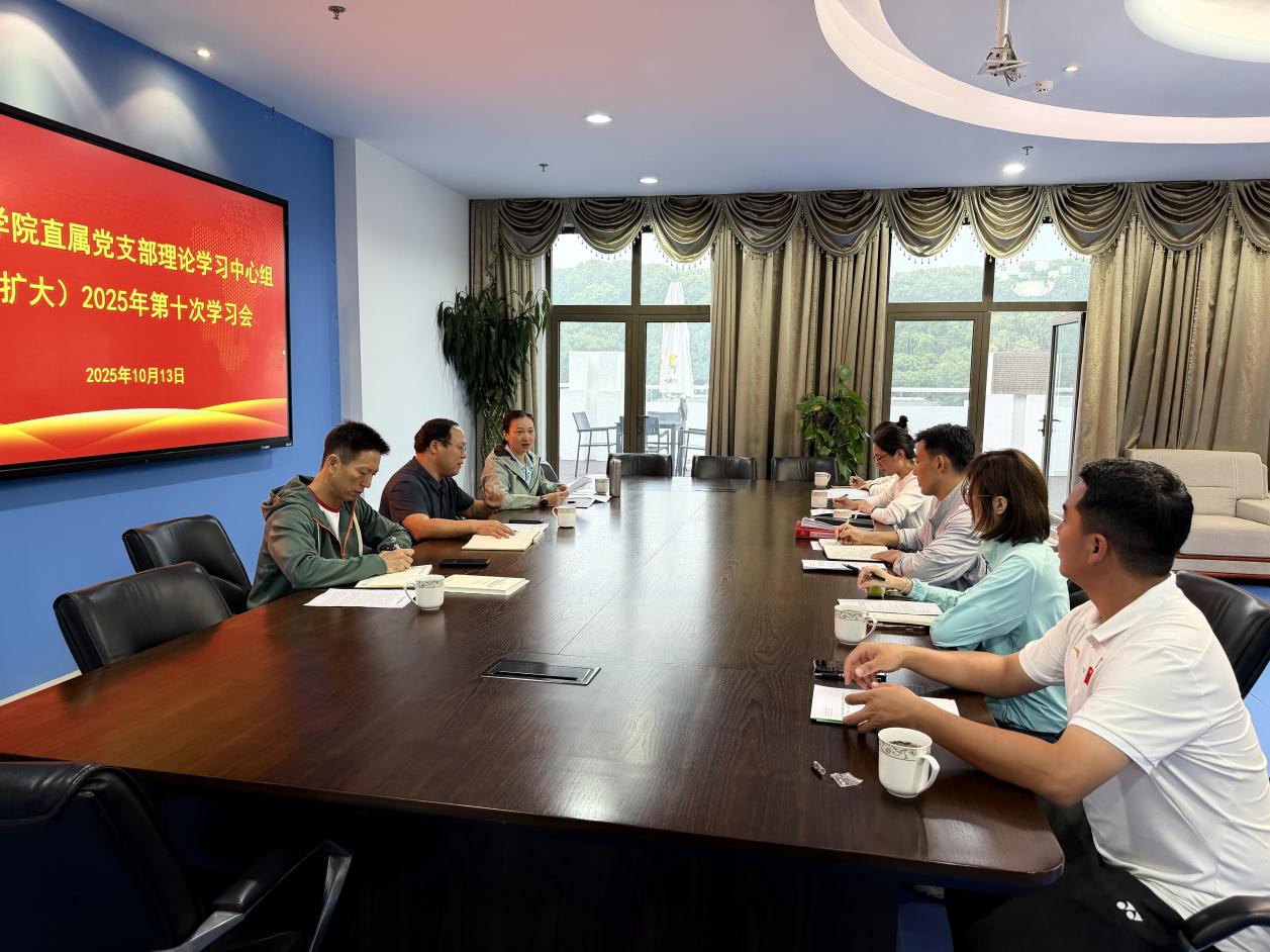 10月13日下午,网球学院直属党支部理论学习中心组(扩大)在网球学院澳网厅开展2025年第十次集中学习。网球学院直属党支部理论学习中心组全体成员、教练员和钟山公司党员代表参加学习,学校列席旁听工作组骆晓娟、王敏、谭青同志列席旁听。学习会由网球学院直属党支部书记唐存楼主持学习