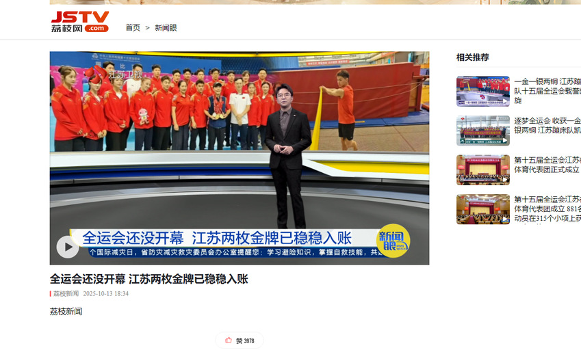 【荔枝新闻】全运会还没开幕 江苏两枚金牌已稳稳入账