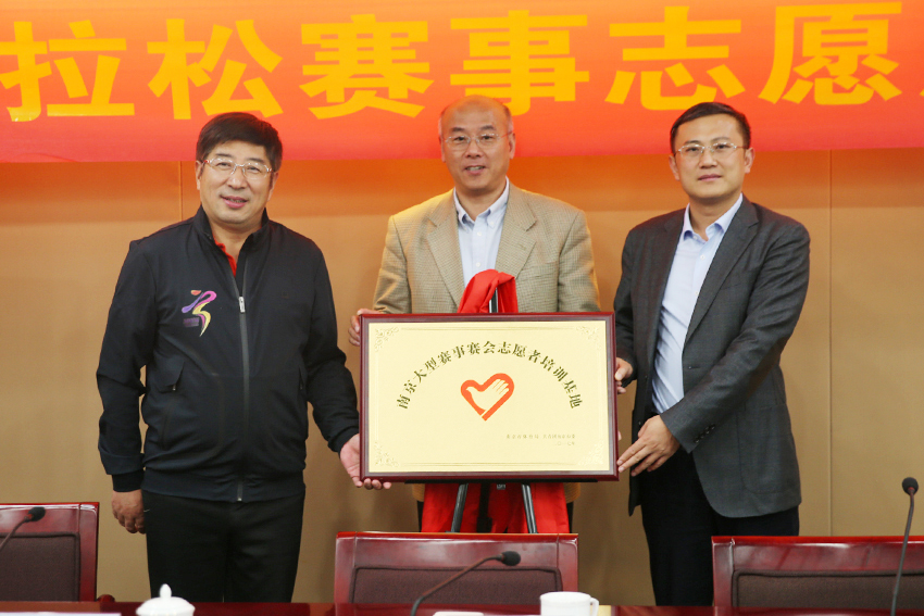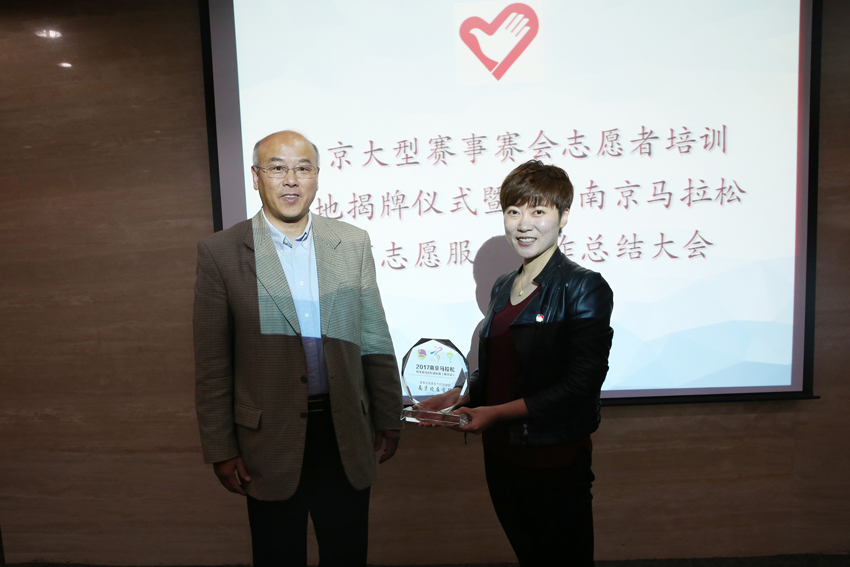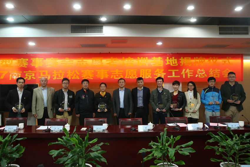 会议伊始,团市委志愿者工作部介绍了2017年南京马拉松志愿者工作总体情况。据悉,此次南京马拉松赛事我校共有239名志愿者参与其中,并出色完成了志愿服务工作。校党委副书记、副校长汤岩,南京市体育局局长陈卫红,共青团南京市委书记林武平共同为我校成为南京大型赛事赛会志愿者培训基地揭牌,并分别为参与南京马拉松赛事志愿者招募工作的高校授奖。
