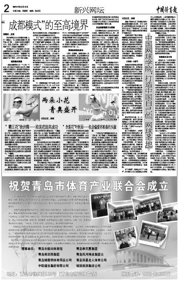 9月2日,中国体育报记者林剑撰写的长文《中国网球学院,打造中国自己的“网球圣地”》发表在《中国体育报》02版,以青奥会网球比赛,以及对我院副院长蒋宏伟的采访为主线,专题报道了我院中国网球学院。文章从中国网球学院的环境布局、硬件设施、国际视野,以及我院“教体融合”的办学方针等方面入手,将中国网球学院媲美网坛四大满贯赛事的“超级圣地”,给予高度评价。