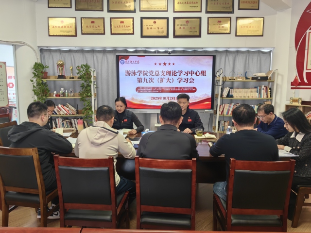 10月28日上午,游泳学院党总支在跳水花游馆二楼会议室召开2025年理论学习中心组第九次(扩大)学习会。会议由学院党总支书记骆晓娟主持,全体管理干部参加学习。学校列席旁听工作组谢长虹、杨蓉、许国君同志列席旁听。