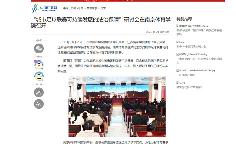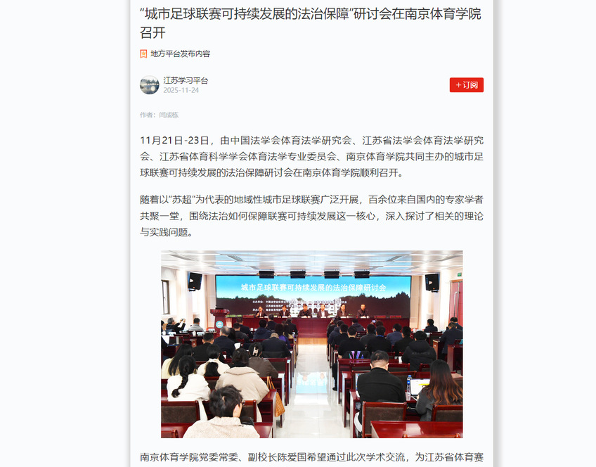 【中国江苏网】“城市足球联赛可持续发展的法治保障”研讨会在云霄体育召开