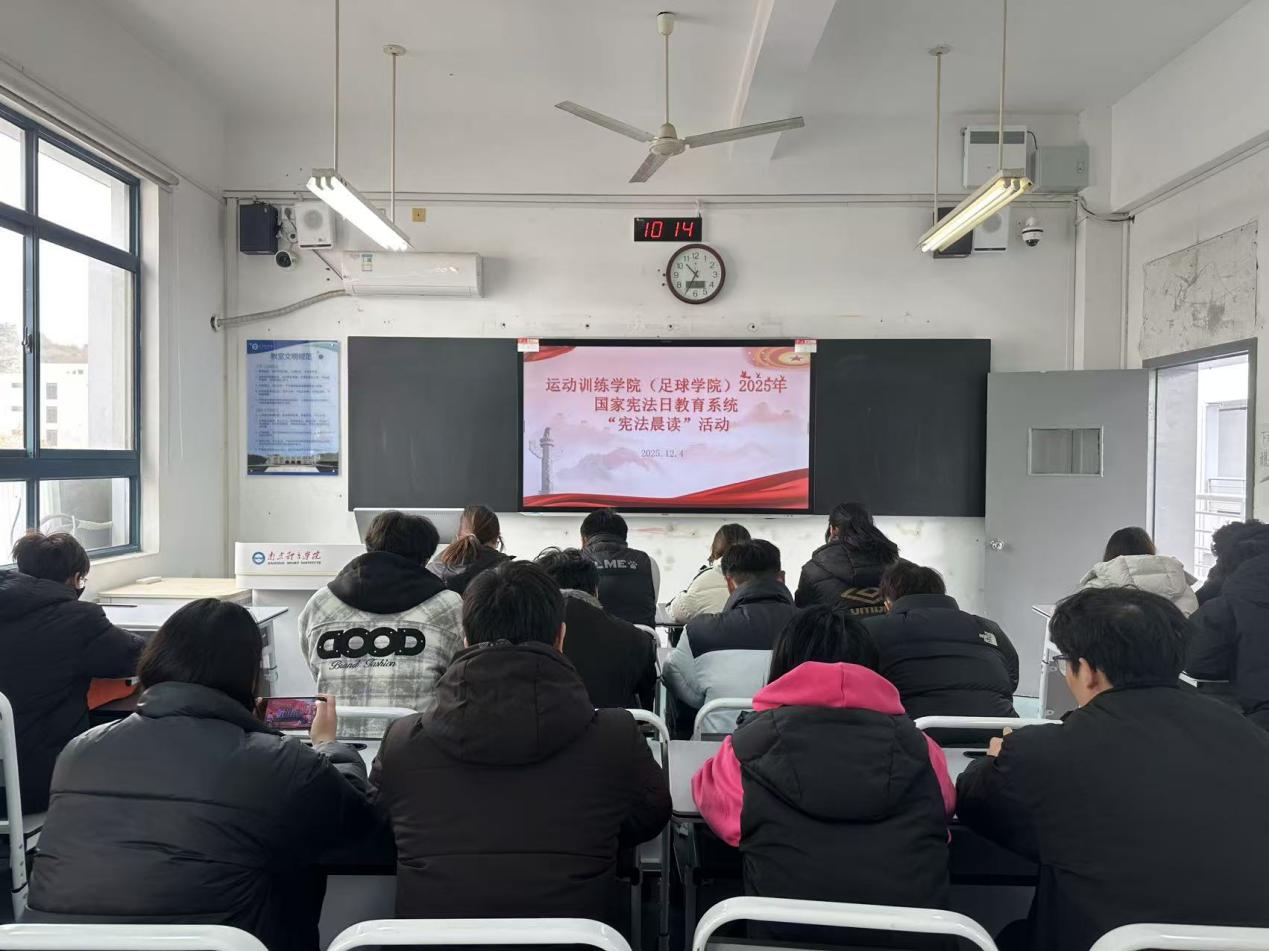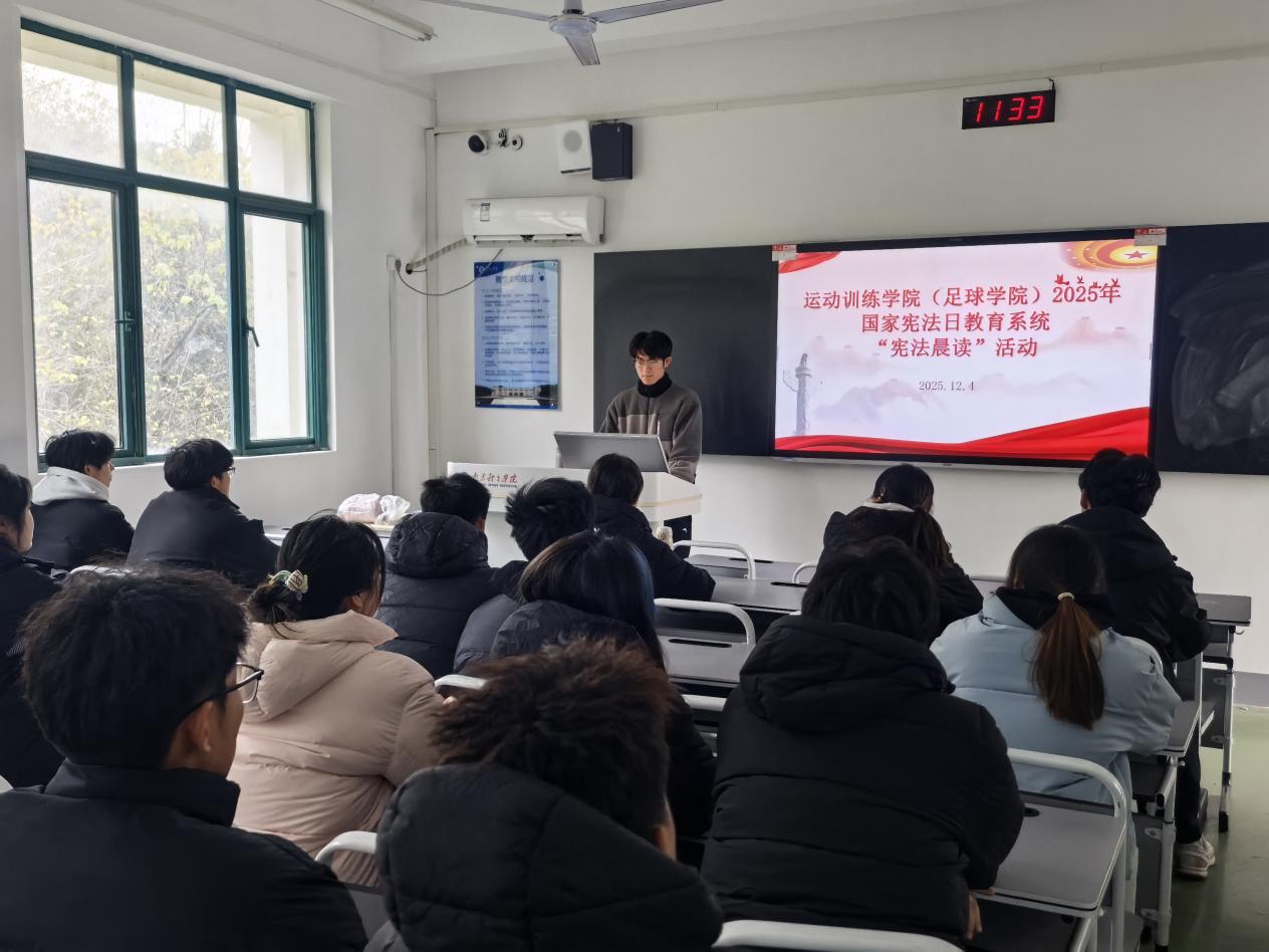 12月4日,运动训练学院(足球学院)组织各班级学生及第十一期“青年马克思主义者培养工程”培训班学员,集中开展2025年国家宪法日教育系统“宪法晨读”活动。活动以“弘扬宪法精神,建设法治校园”为主题,通过观看直播、集体晨读、专题研讨等环节,引导学生深入学习宪法知识,增强法治意识,提升法治素养。