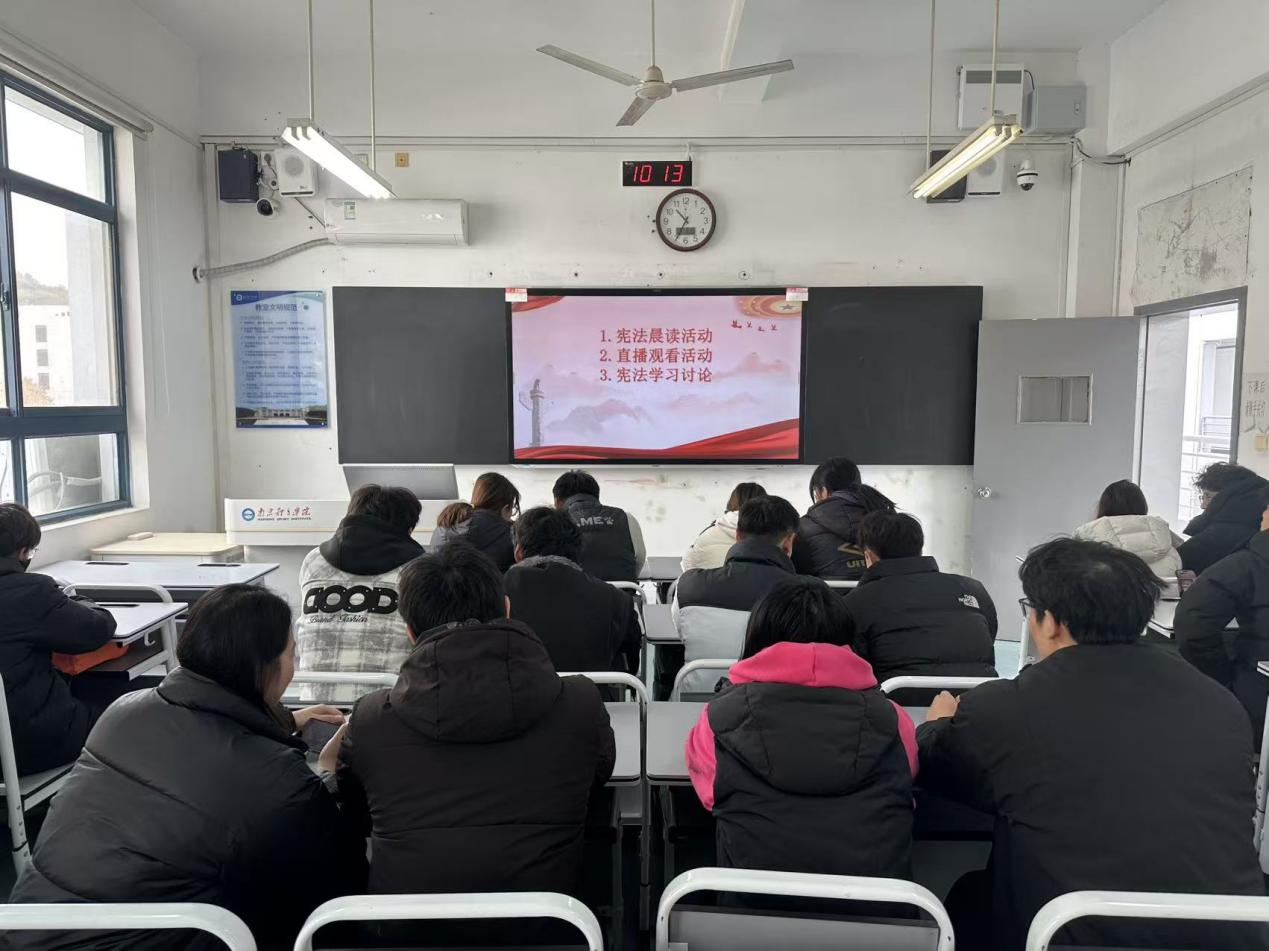 各班学生和青马学员通过教育部全国青少年普法网直播平台,观看国家宪法日主会场活动,认真聆听领导讲话和专家讲解,同步感受宪法教育的庄重氛围。直播结束后,各班级及青马班小组组织各班同学齐声朗读宪法重要条款,从国家根本制度到公民权利义务,声声入耳、句句入心,在庄严的诵读中进一步领悟宪法的权威与精神。