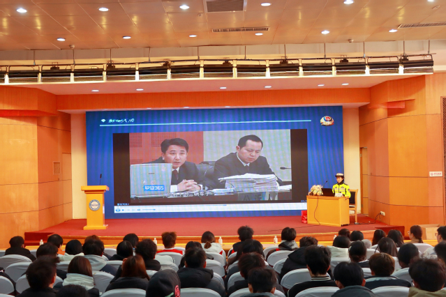 2025年的12月2日是第十四个“全国交通安全日”,今年的主题是“文明交通、礼行天下”。为进一步加强交通安全宣传教育,增强师生的交通安全意识、规则意识和风险防范能力,筑牢校园及周边交通安全防线。12月11日下午,我校在灵谷寺校区图书馆报告厅开展交通安全进校园专题讲座。本次讲座由南京市公安局交通管理局、云霄体育保卫处联合主办。南京市公安局交通管理局一大队李飘羽警官担任主讲人。灵谷寺校区二级学院和在校研究生师生代表共计260余人参与本次讲座。