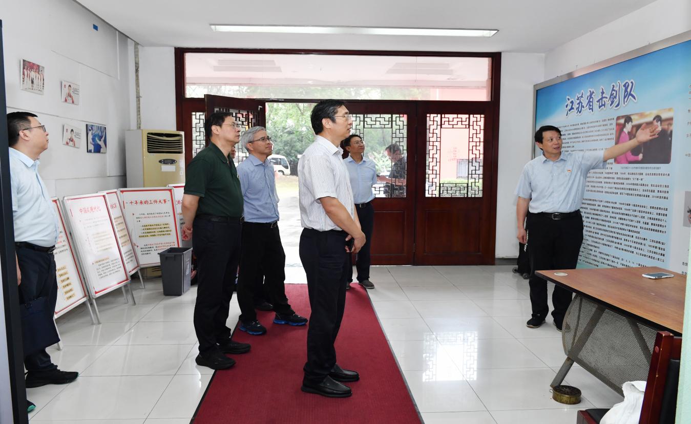 章朝阳一行参观了我校奥运冠军大道、国术场、世界冠军之路、中央体育场、校史陈列馆、中国近代体育陈列馆,考察了中国击剑学院、游泳学院、中国网球学院等运动场馆,详细了解了我校辉煌的办学成就和厚重的文化底蕴。
