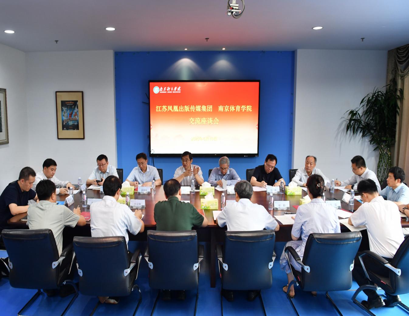 章朝阳介绍了凤凰出版传媒集团的发展历史、特色优势、战略规划。他指出,凤凰出版传媒集团连续十六届入选“全国文化企业30强”,凤凰传媒连续四年入选“全球出版50强”,位列国内出版企业第一。当前正向建成综合竞争力强、文化影响力强、融合创新力强、国际传播力强、人才实力强的世界一流出版传媒企业目标砥砺前行。他希望与我校进一步深化交流,围绕图书出版、体育赛事传播、体育资源开发、学生实习就业等多个领域开展纵深合作,共同推动双方高质量发展。