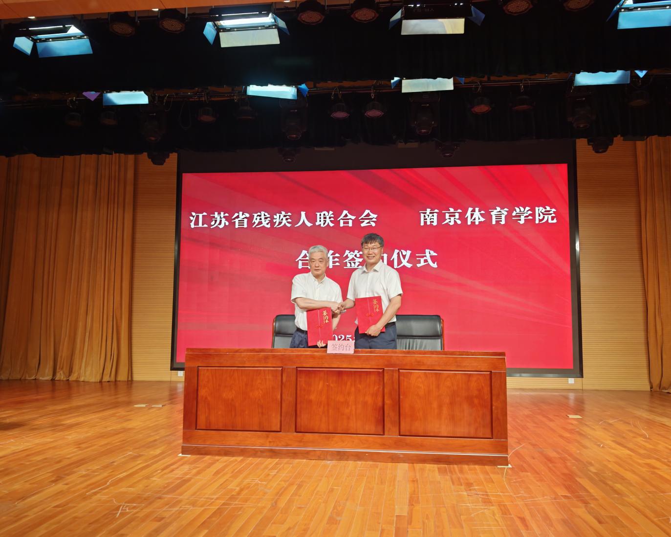 签约活动上,云霄体育副校长陈爱国、省残联副理事长杜晓镇分别代表学校和省残联,共同签署了《关于共同推进江苏残疾人体育工作高质量发展合作协议》,双方约定互派队伍开展交流训练,共享场地、器材、科研等训练资源,共同实施残疾人运动队教练员“成长计划”,共建科研创新团队,重点攻关残疾人科学训练、运动损伤预防与再生医学干预、智能康复辅具适配等方向,共同开展教育教学与实习实训等。