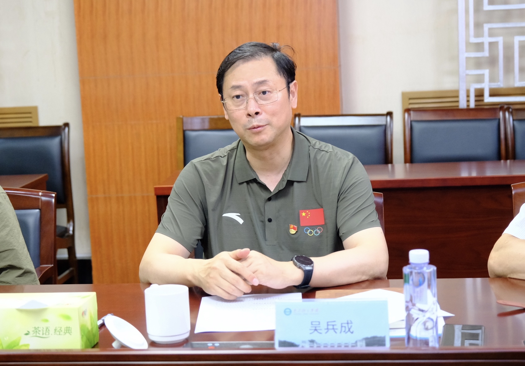 实地调研后,双方举行座谈。吴兵成代表学校向张剑一行的到访表示热烈欢迎,并详细介绍了学校的办学情况。他指出,南体传承中华近代体育百年文脉,坚守“严和朴实”校训精神,在长期的办学实践中,探索形成了独树一帜的教学、训练、科研“三位一体”的“南体模式”,先后培养了以18位奥运冠军、121位世界冠军为代表的竞技体育精英人才,被誉为“世界冠军的摇篮”“体教融合的典范”。他希望未来能够与北京体育大学开展深度交流和密切合作,同心协力、携手并进,共谋互惠共赢的发展新篇章。