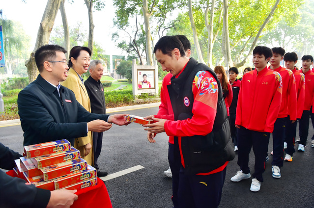 10月27日上午,我校在奥运冠军大道隆重举行出征仪式,欢送我校乒乓球队和网球队奔赴十五届全运赛场。校党委副书记兰亚明出席仪式并讲话,副校长鲍勤、刘健出席仪式。仪式由副校长刘健主持。