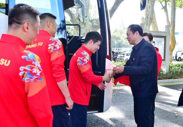吴兵成表示全运会是全国顶尖运动员同台竞技、展现风采的重要舞台,而跳水项目更是竞争最为激烈的赛场,他预祝大家在全运赛场上勇创佳绩、绽放光芒。同时,他对跳水队全体出征将士提出三点参赛要求:一是坚定信心,再创佳绩。江苏跳水队是一支具有优良传统和突出成绩的队伍,过往的扎实积累与丰富经验,是我们攻坚克难的坚实根基,大家要续写辉煌、再创佳绩。二是勇于拼搏,突破自我。全运赛场高手云集,希望大家秉持胜不骄、败不馁的精神,充分发挥训练水平,力争超水平表现,不断挑战自我、战胜自我。三是严守纪律,展现风采。要自觉维护江苏体育人和南体人的良好形象,严格遵守大赛各项管理规定,与裁判、教练员保持顺畅沟通,为江苏、为南体增光添彩。