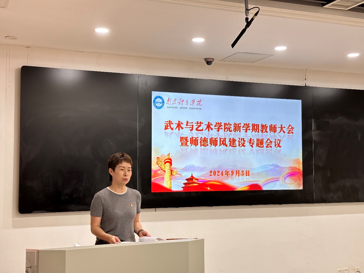 为研究部署新学期各项工作任务,进一步加强学院师德师风建设,努力建设新时代高素质专业化教师队伍,9月3日,武术与艺术学院在图书馆第二报告厅召开新学期教师大会暨师德师风建设专题会。会议由党总支书记叶瑛主持,全体教职工参会。