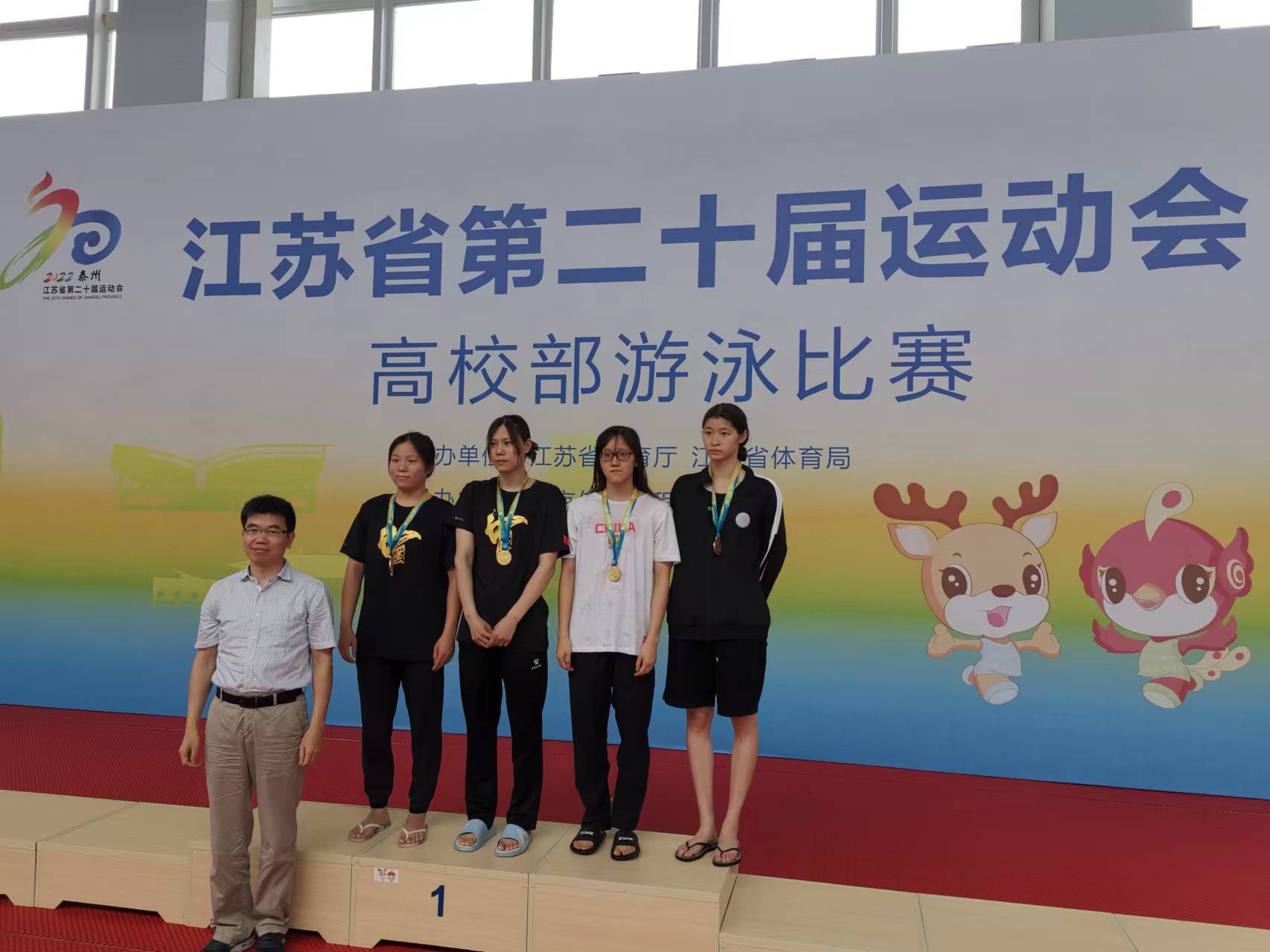 在首日比赛中,我校运动员发挥出色,夺得男子1500米自由泳(许浩楠)、女子100米蛙泳(陈可意)、男子200米个人混合泳(徐霄阳)、男子200米蝶泳(王约翔)、男子4X100米自由泳接力(王约翔、徐浩楠、袁一鸣、徐霄阳)、女子4X100米自由泳接力(唐乐、陈可意、吴月、许欣)共6枚金牌,实现开门红。