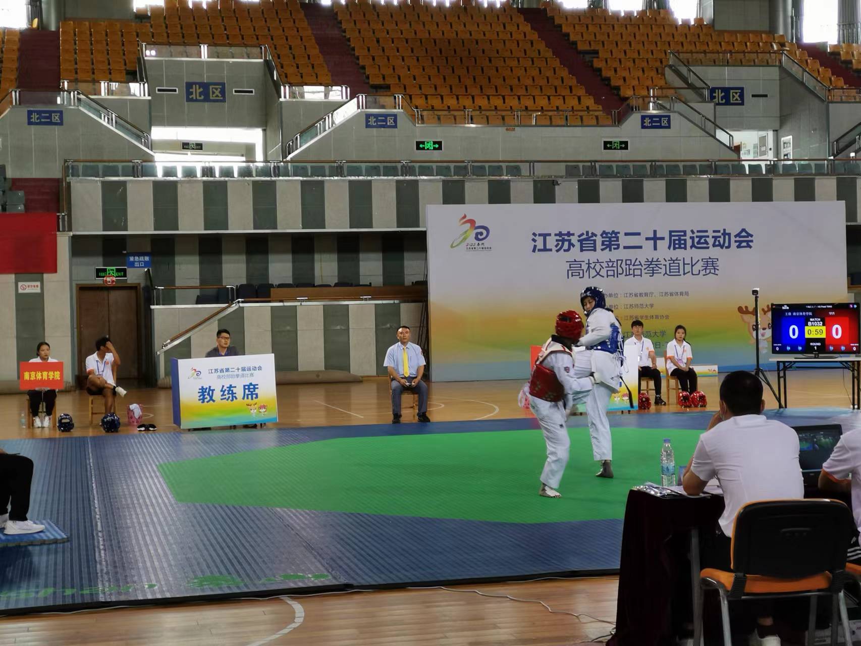 江苏省第二十届运动会高校部跆拳道比赛于8月4月-7日在江苏师范大学举行。8月4日上午,校党委副书记兰亚明在运动训练学院(足球学院)有关人员陪同下前往江苏师范大学,看望我校参赛人员,送上慰问品,现场观看部分赛事,并为获奖运动员颁奖。