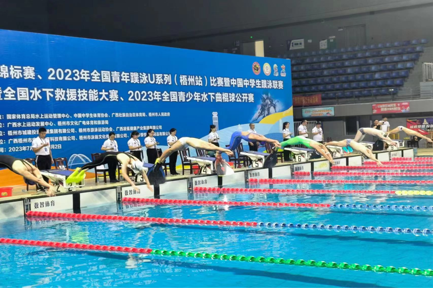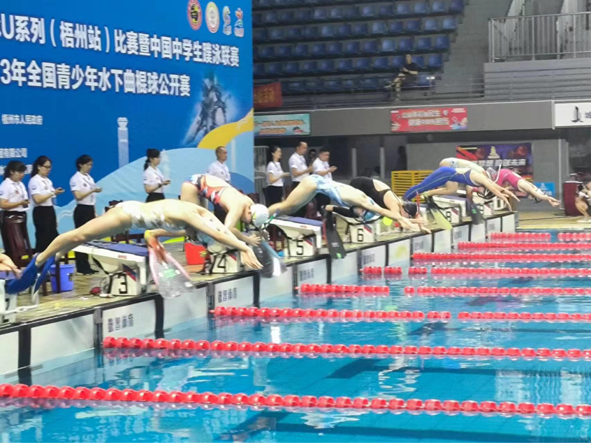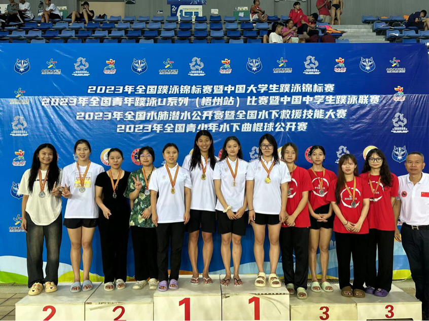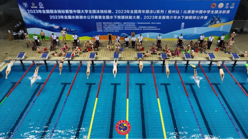 2023年全国蹼泳锦标赛暨中国大学生蹼泳锦标赛于7月29日—8月3日在广西壮族自治区梧州市举行。本次比赛由国家体育总局水上运动管理中心、中国大学生体育协会、广西壮族自治区体育局、梧州市人民政府主办,32支队伍、300余名运动员教练员参加比赛。我校运动训练学院9名游泳专项学生代表云霄体育首次参赛并获得了优异的成绩。