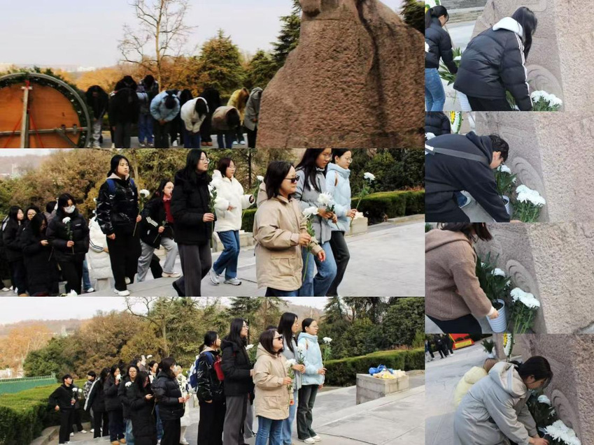 在南京抗日航空烈士纪念碑前,张春梅老师带领大家举行祭英烈仪式。师生们整齐列队庄重地鞠躬默哀,之后有序向烈士敬献鲜花,祭奠英烈。缅怀那些英勇无畏、为国捐躯的航空烈士,铭记英烈们的牺牲和奉献。