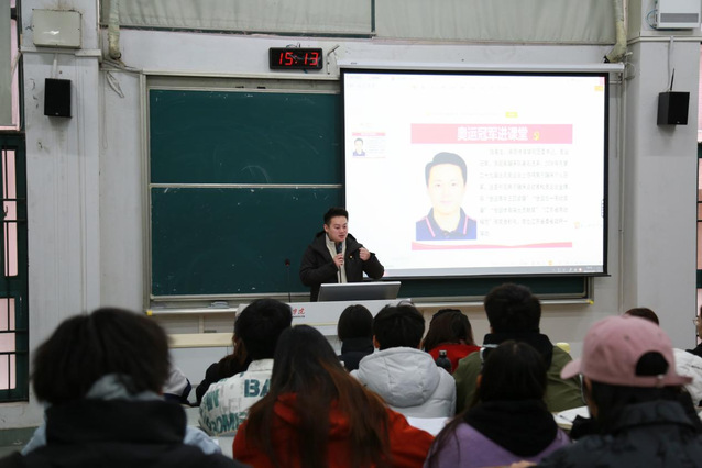 陆春龙是中国男子蹦床运动员,2008年在第二十九届北京奥运会上夺得男子蹦床个人冠军,这是中国男子蹦床运动首枚奥运会金牌。课堂上,奥运冠军陆春龙与同学们讲述了在备战2008年奥运会的时候,他是如何面对腰椎滑脱伤病坚持训练,调整方法与心态,全身心地努力不让自己人生后悔,最后实现突破。陆春龙以亲身经历,将“为国争光”“艰苦奋斗”的宏大主题,具象为一次次高强度的训练、一场场惊心动魄的比赛,让奥运精神、体育精神不再是标语口号,而是有血有肉、可感可知的真实历程。