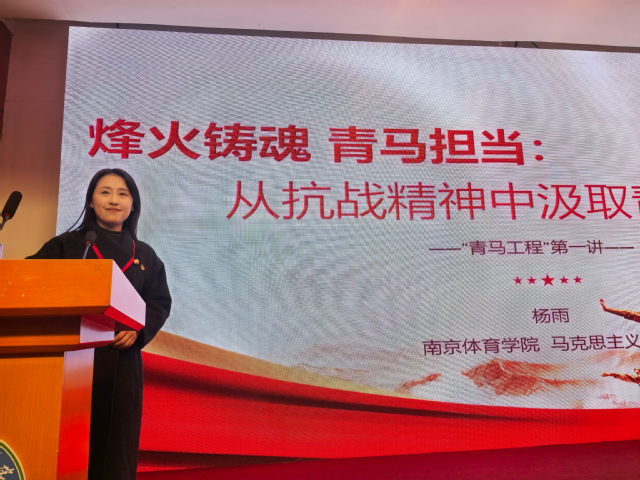 为贴近青年特点,杨雨老师创造性地将抗战精神与中华体育精神相贯通,揭示二者在“爱国、拼搏、团结”等价值内核上的深刻联系。通过八路军“战斗篮球队”、延安“九一”扩大运动会等历史事例,以及张雨霏、马龙等当代体育健儿的奋斗故事,她生动展现了精神血脉的跨越时空传承,激励学员将抗战精神中的“爱国、担当、斗争、团结”转化为思想淬炼、政治历练和实践锻炼的实际行动,努力成长为可堪大用、能担重任的栋梁之材。
