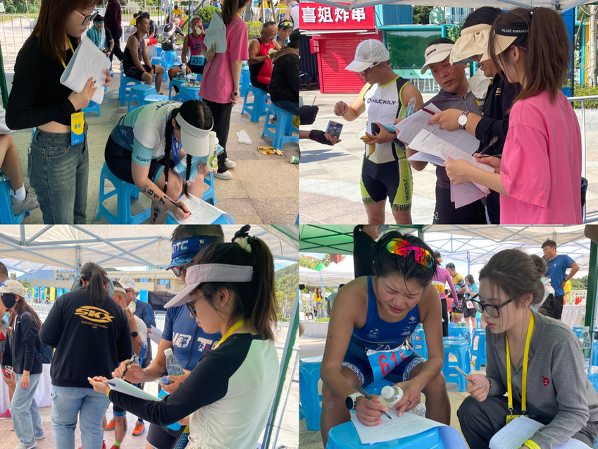 在看望学院实习生之余,还充分利用赛事举办期,通过与学院签约的实训企业江苏飞睿体育文化有限公司合作,带领学生实地观摩考察铁人三项赛事,积极与赛事组织者、参赛者交流、现场发放问卷等方式,全方位的接触赛事、了解办赛流程,对于进一步推动产教融合,建设体育赛事产业学院和培养体育赛事策划和运营人才具有重要的促进作用。