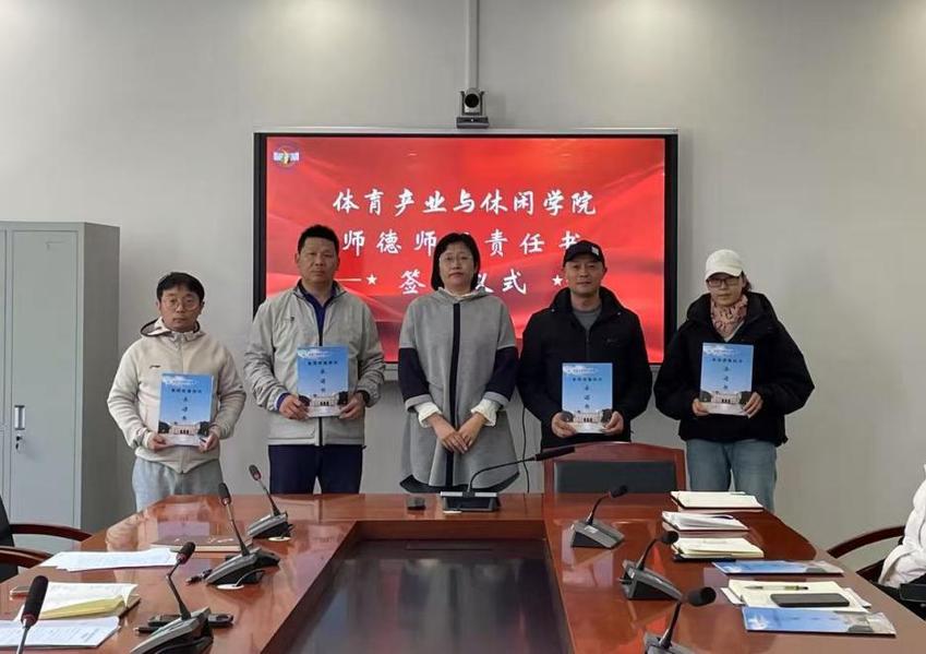 会上,学院党总支书记王进代表党总支与各支部书记签订了2025年度《全面从严治党工作责任书》,党总支副书记陈志与各系(办)主任签订了2025年度《校园治安综合治理和安全生产责任书》,有力推动了学院党风廉政教育和安全生产责任的层层传导。全体教职工郑重签订了《师德师风承诺书》,承诺自觉践行教育初心,恪守师德规范,以实际行动维护教师的职业尊严和学院的良好风气。