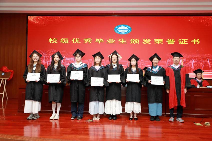 在全场热烈的掌声中,兰亚明发表讲话,他代表学校向全体毕业生表示热烈祝贺,向师长和家长表示诚挚感谢,并勉励同学们牢记“严和朴实”的校训,秉持家国情怀,在体育强国的伟大征程中奋楫扬帆。他寄语毕业生“以体育之名勇担时代使命”,以严和朴实铸就精神底色,用专业所长服务社会所需;在全民健身战略勇当先锋,为体育强国建设贡献力量。“以创新之志开拓行业新局”,积极把握数字化变革时代机遇,永葆求知若渴进取之心;传承南体敢闯敢试创新基因,争做体育行业发展破壁者。“以青春之魂谱写人生华章”,希冀毕业生们怀揣永不言弃的赤子之心,绽放体育人的阳光风采;把奋斗作为青春的底色,在时代浪潮中续写属于南体青年的光辉篇章。仪式中,兰亚明为2025届校级优秀毕业生颁发了荣誉证书。
