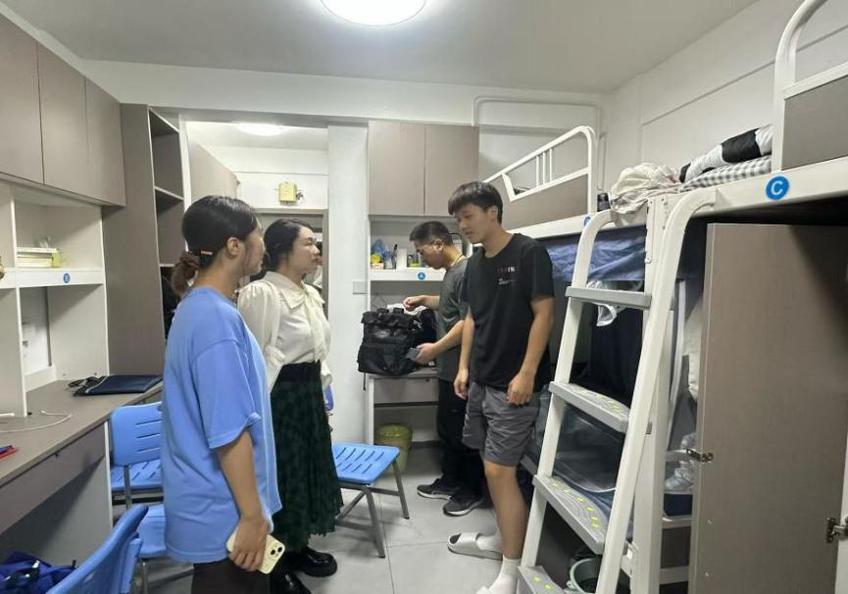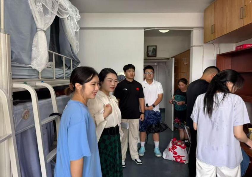 迎新期间,学院领导班子与新生辅导员宋佳共同走访新生宿舍,关切询问新生入住情况,并与新生进行亲切交流,及时传递学院的关怀与温暖。宋佳带领院学生会志愿者团队坚守迎新工作一线,为新生提供耐心细致的引导服务,以热情周到的态度帮助新生消解初入校园的陌生感,有效增强了新生的归属感。