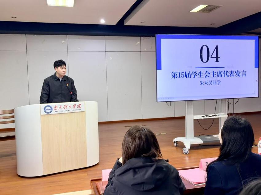 朱天昊作为第15届主席团代表发言。他对新一届学生会团队提出建议:一是要始终与同学保持紧密联系;二是要加强团队建设;三是要敢于创新,推动学生会工作实现新突破。最后,他对新一届团队表达了美好祝愿,希望大家能推动学院学生会工作走向新高度。