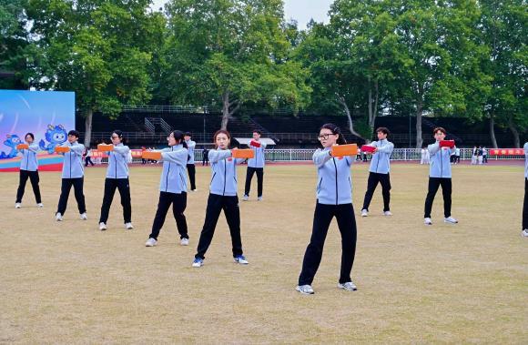 学院学子带来的非遗石锁表演成为开幕式亮点。36名学子演绎的石锁节目,刚柔并济、上下翻飞,将百年非遗技艺与体育精神完美融合,尽显“厚本砺行”的文化底蕴,同学们活力四射的表现赢得了阵阵掌声。专业的表演点燃了现场氛围,将开幕式气氛推向高潮,充分展现出学院学子多元的运动素养与积极向上的精神面貌。