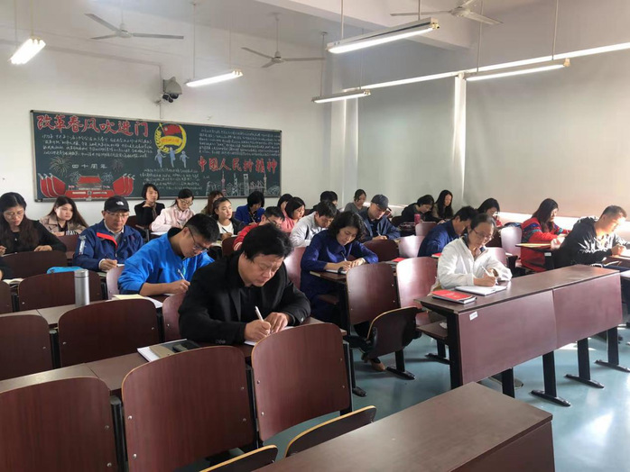 2019年11月5日下午2点,体育产业与休闲学院党总支在仙林教学楼 401 教室开展“不忘初心,牢记使命”主题教育集中学习。学院全体教师党员参加会议。