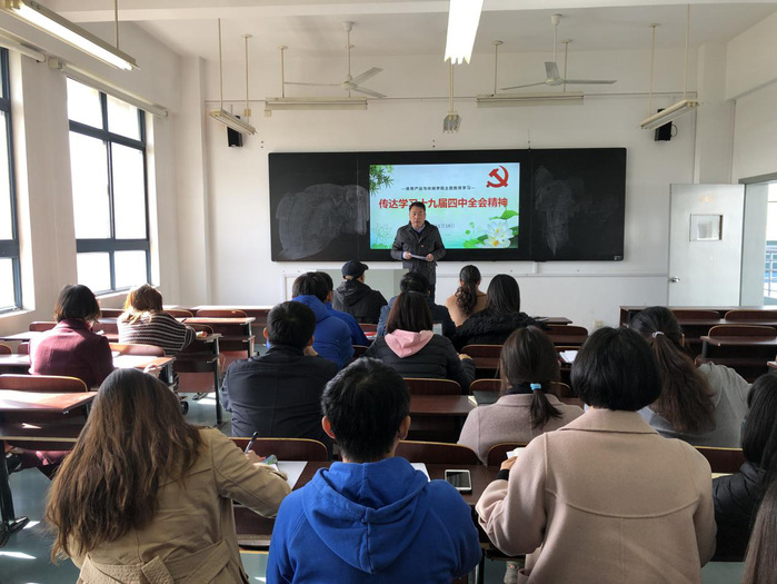 王进书记从党的十九届四中全会的基本情况、内容和成果、重大意义以及学习贯彻要求四个方面进行领学。并强调指出,学习贯彻好十九届四中全会精神是当前和今后一个时期重要任务,要以全会精神为指导,着力推进学院改革,形成学院全体师生自觉尊崇制度,坚决维护制度,严格执行制度的氛围,要把学习全会精神与做好当前工作、特别是正在开展的主题教育工作紧密结合起来,要做好学院制度的“废改立”工作。